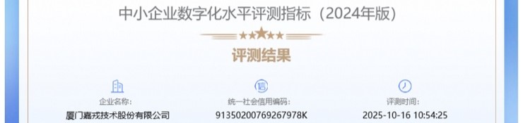 喜訊!嘉戎技術(shù)獲評(píng)《中小企業(yè)數(shù)字化評(píng)測(cè)指標(biāo)》三級(jí)認(rèn)證